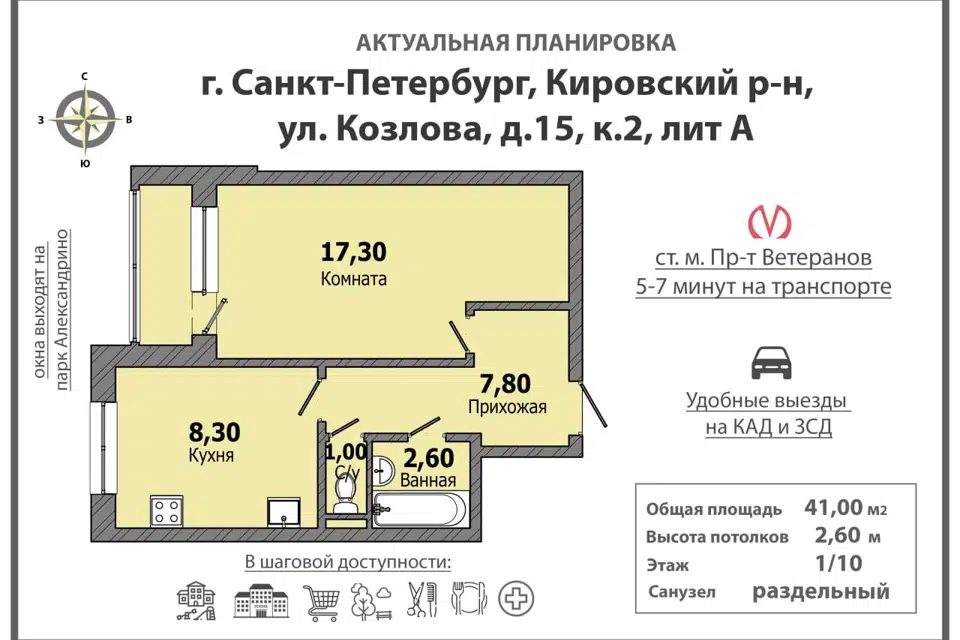 Купить однокомнатную квартиру в Санкт-Петербурге у метро Проспект Ветеранов