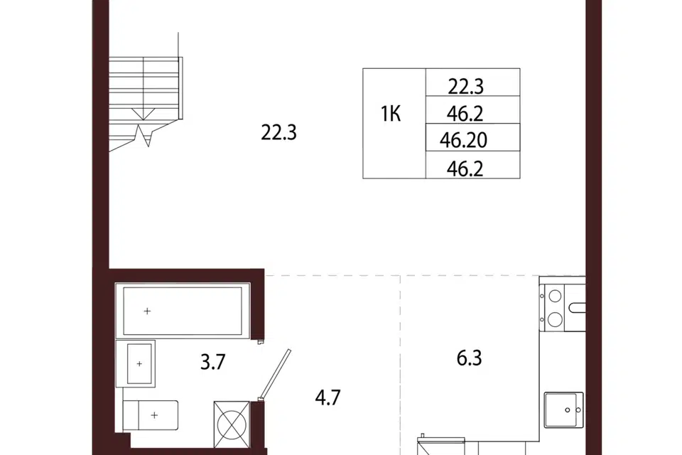 1-комн. кв., 46.2 м², 4/5 этаж