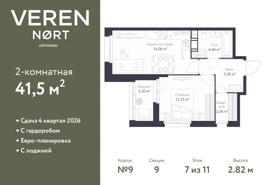 1-комн. кв., от 28.11 м², 15-16 этажи