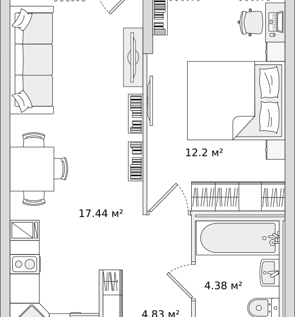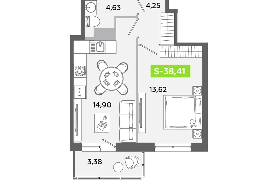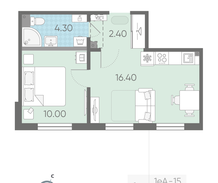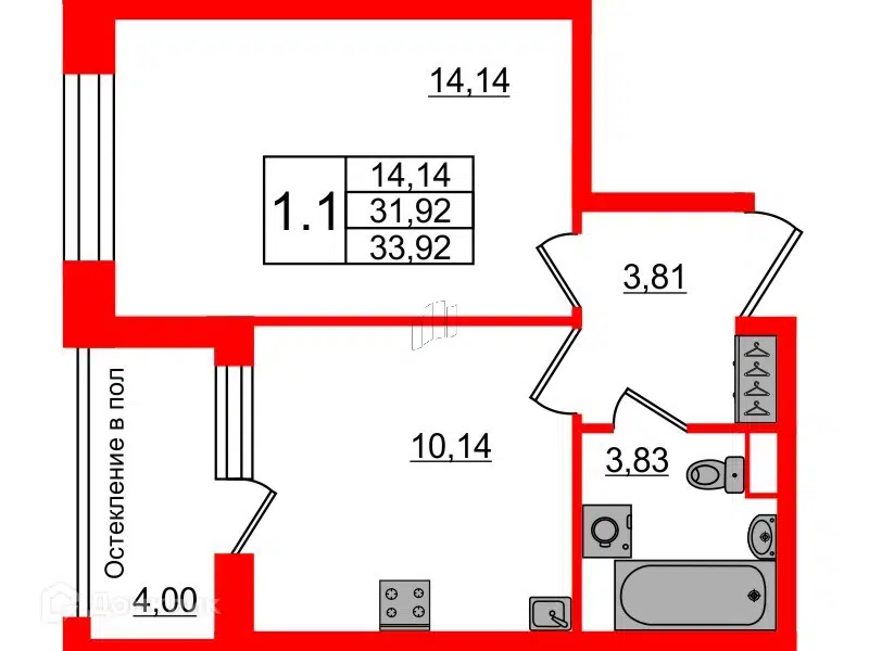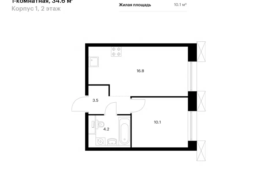1-комн. кв., от 33.3 м², 4-11 этажи