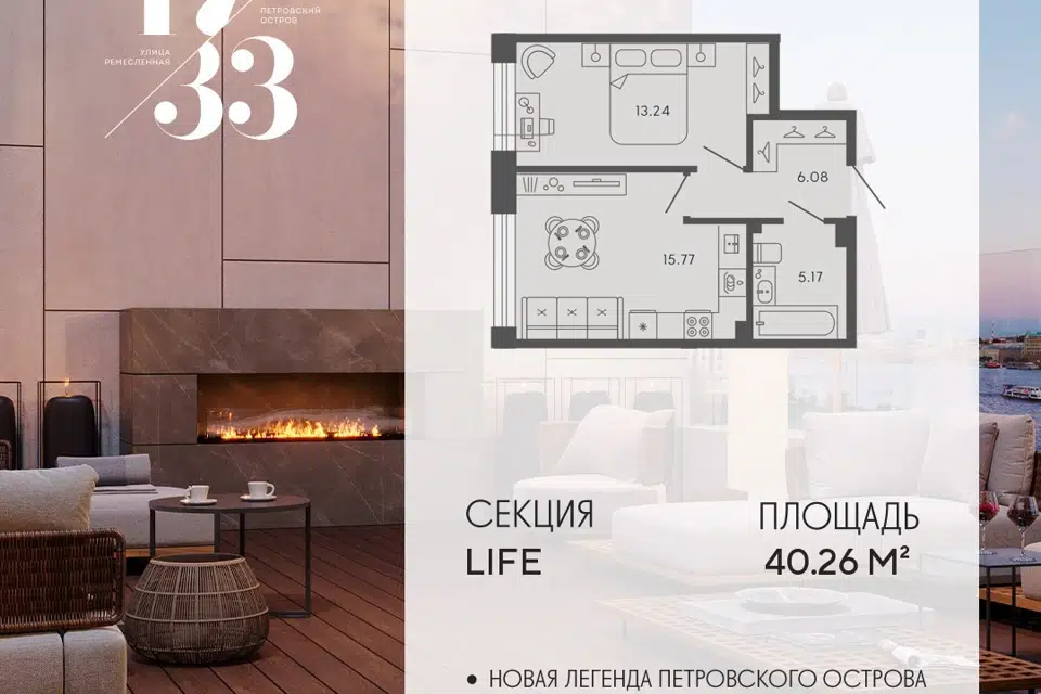 1-комн. кв., от 40.26 м², 4-6 этажи