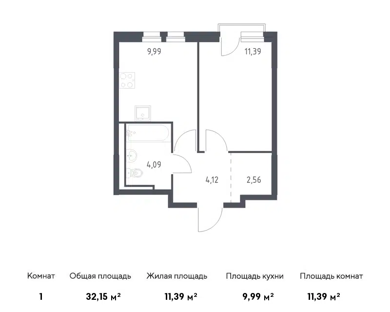 1-комн. кв., 32.15 м², 9/15 этаж