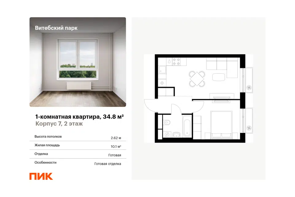 1-комн. кв., от 32.9 м², 6-9 этажи