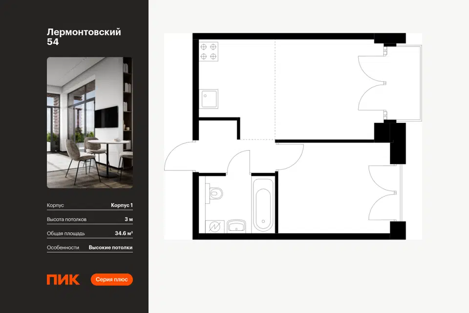 1-комн. кв., от 34.7 м², 6-8 этажи