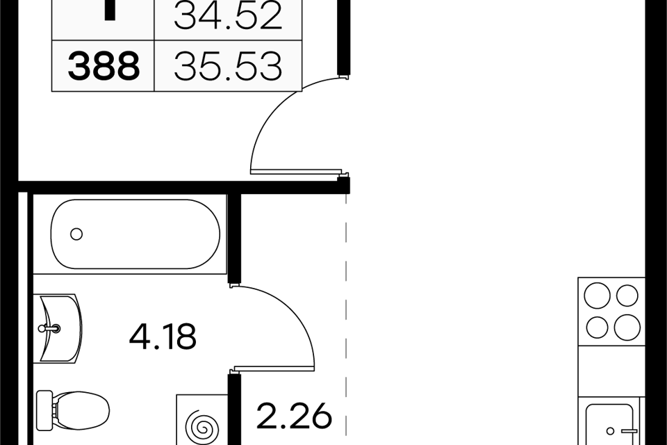 1-комн. кв., 35.53 м², 3/9 этаж