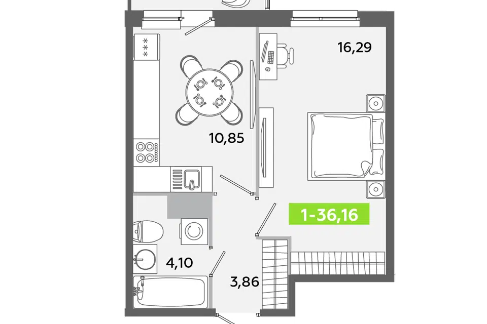 1-комн. кв., от 36.3 м², 2-4 этажи