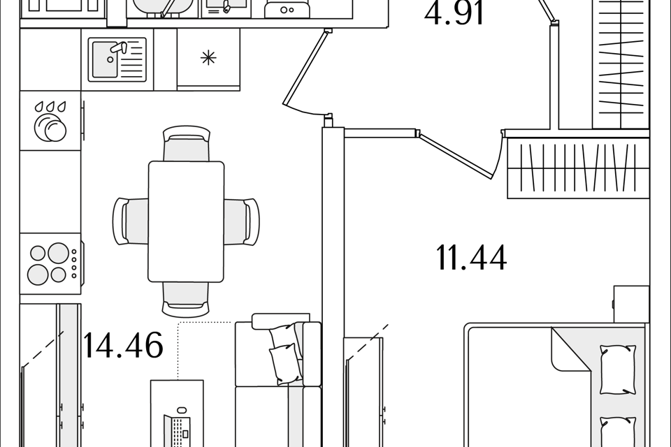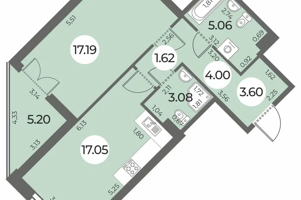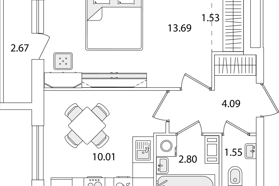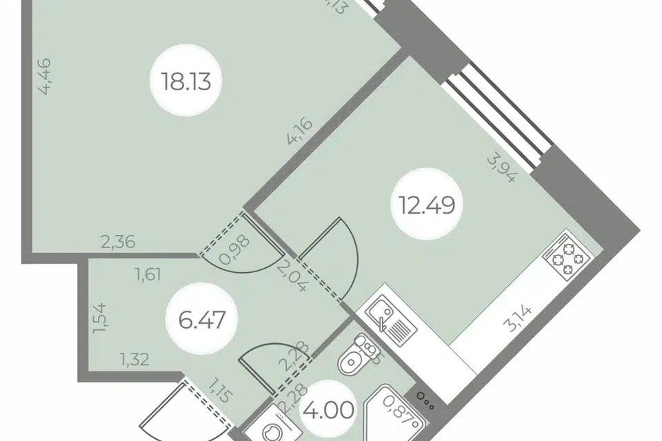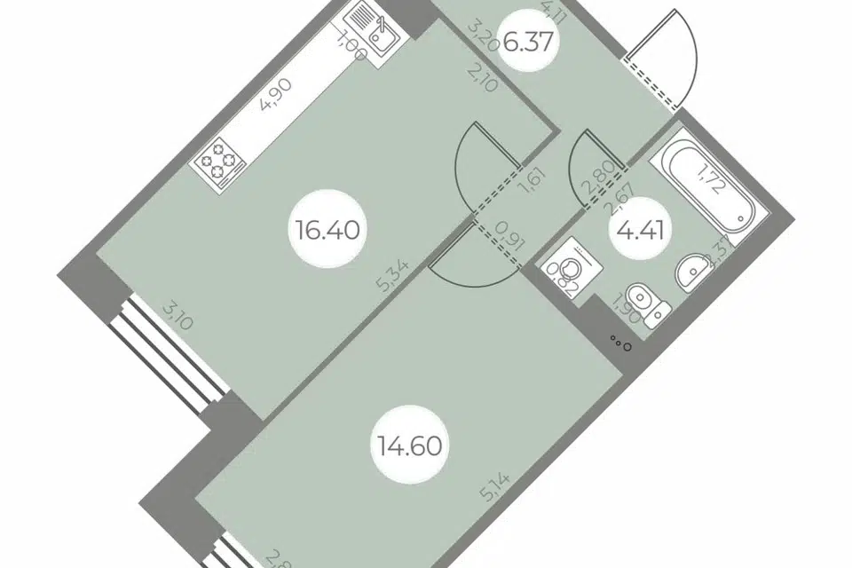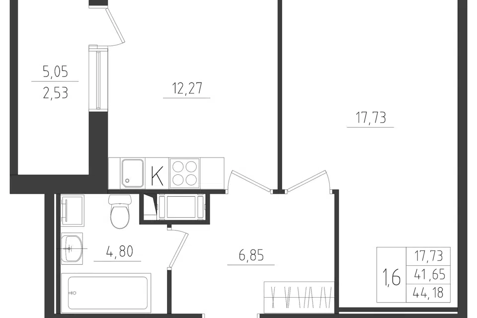 1-комн. кв., от 41.09 м², 2-19 этажи