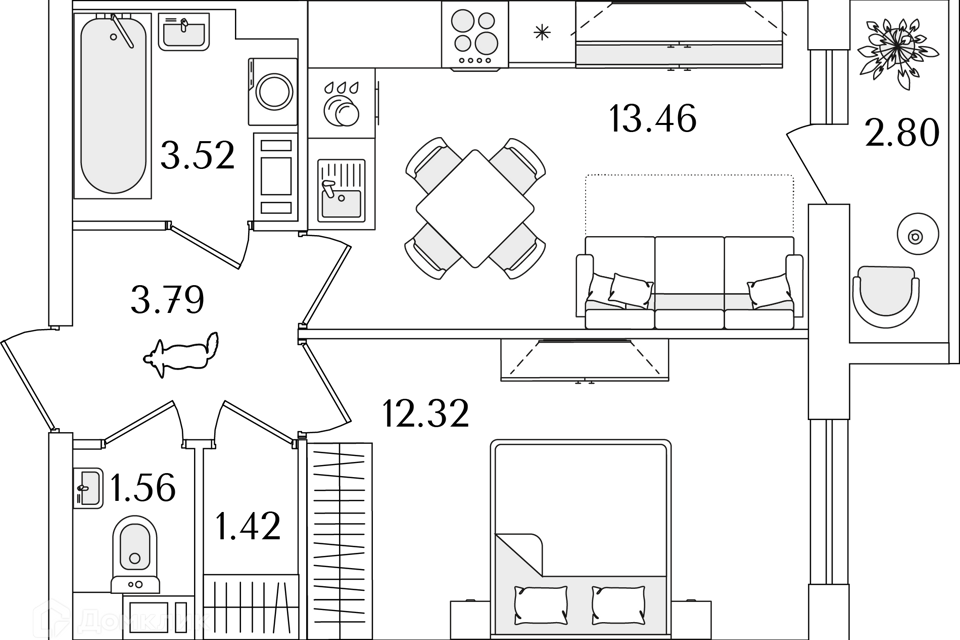 1-комн. кв., от 34.08 м², 2-20 этажи