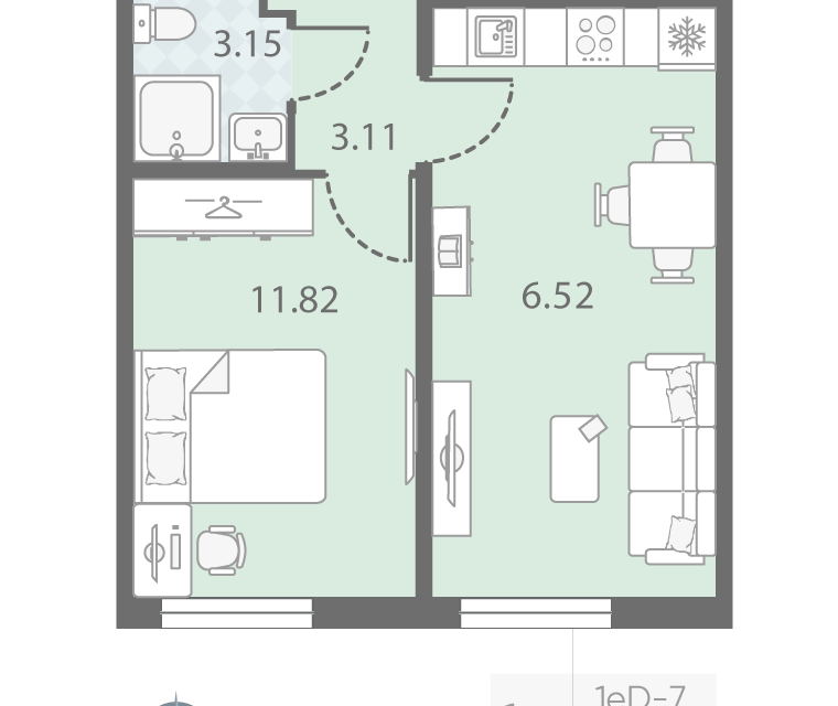 1-комн. кв., от 31.14 м², 1-7 этажи