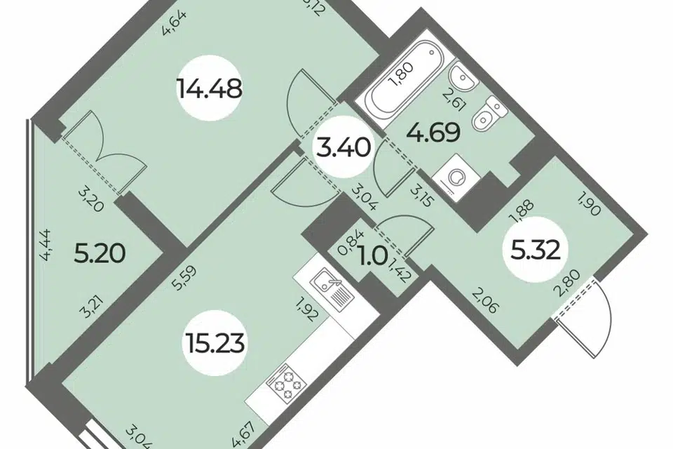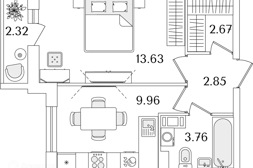 1-комн. кв., от 29.63 м², 1-9 этажи