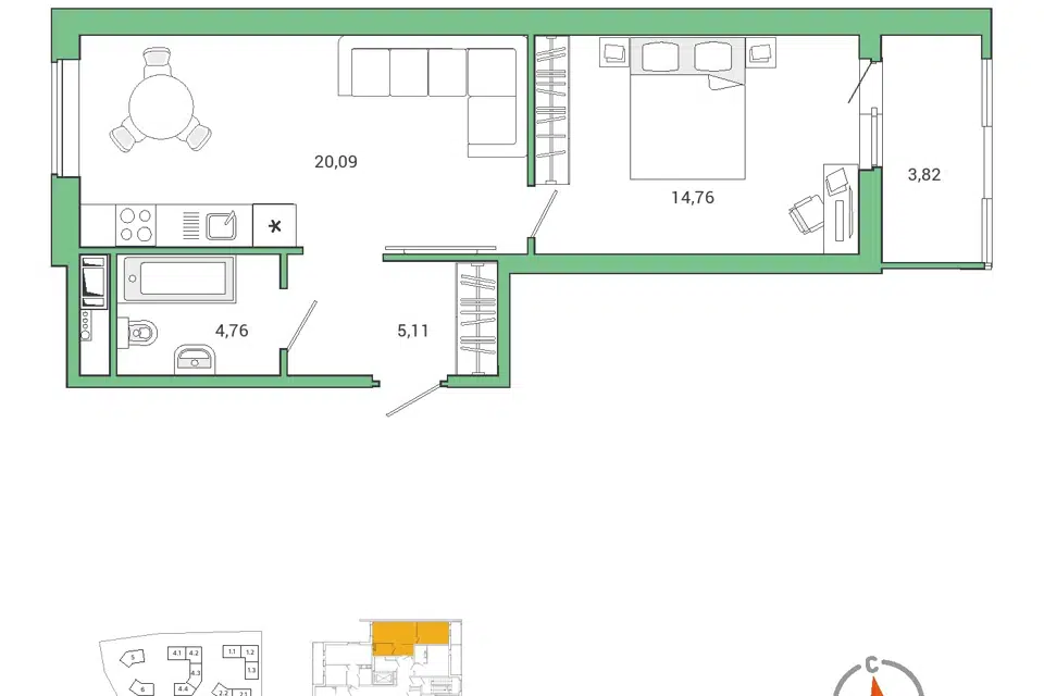 1-комн. кв., от 30 м², 1-11 этажи