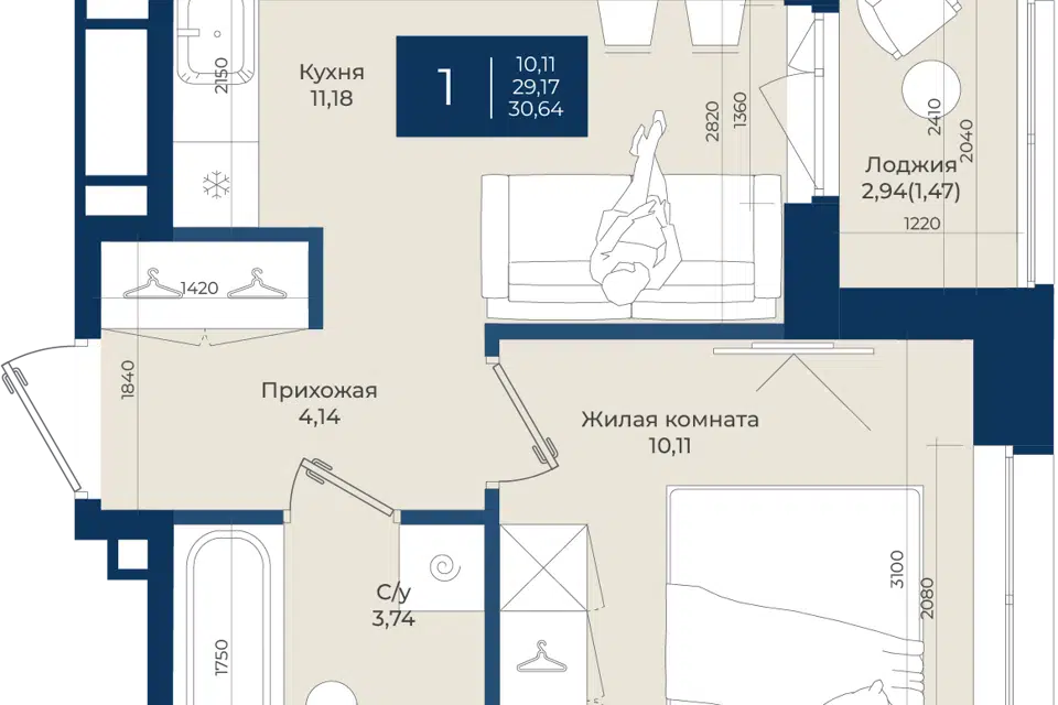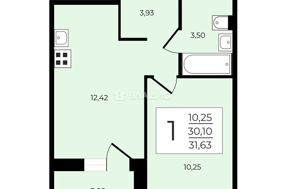 1-комн. кв., от 30.39 м², 1-9 этажи