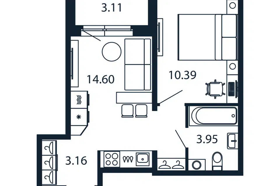 1-комн. кв., от 31.62 м², 1-12 этажи