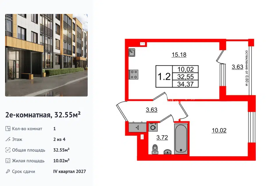 1-комн. кв., от 30.06 м², 2-4 этажи