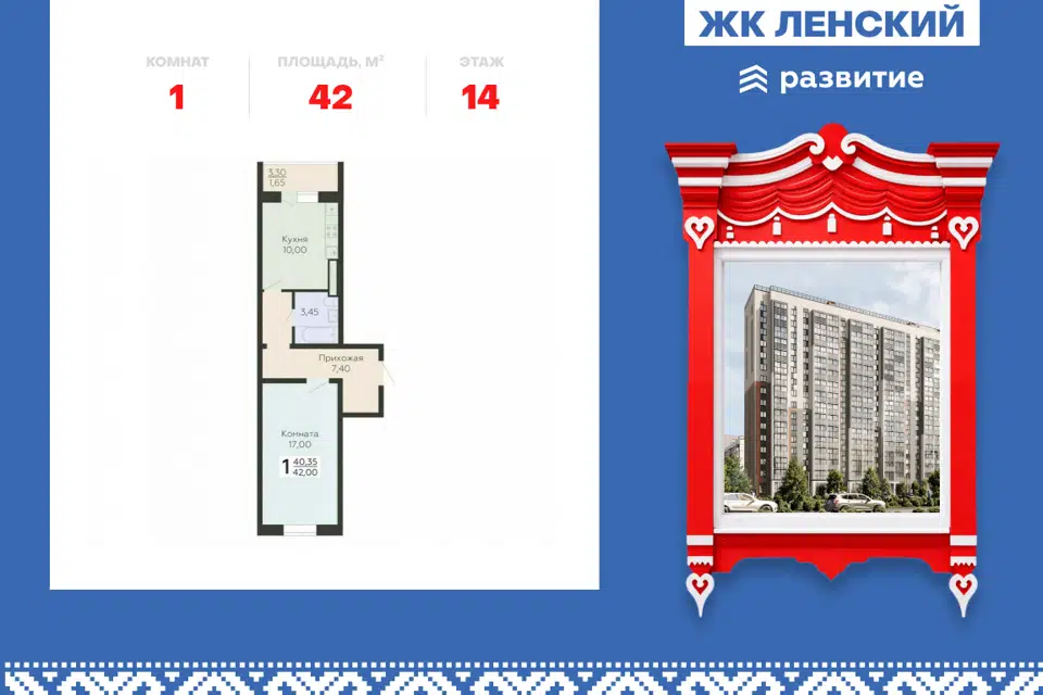 1-комн. кв., 42 м², 5/16 этаж