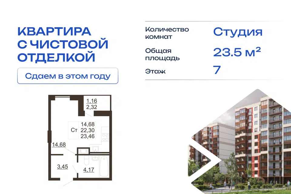 Студия, 22.9 м², 5/11 этаж