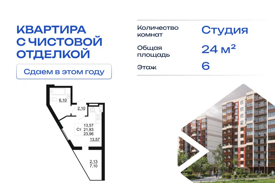 Студия, 21.9 м², 5/11 этаж