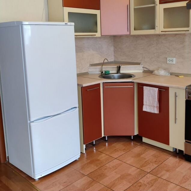 Вся мебель и техника остается! Кровать 160 на 200 с ортопедическим матрасом и топпером, обеденная зона, кухня Мдф со встроенной техникой, микроволновка, чайник, новый холодильник и стиральная машинка indesit, полноценный шкаф.