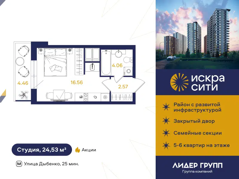 Студия, 24.6 м², 13/26 этаж