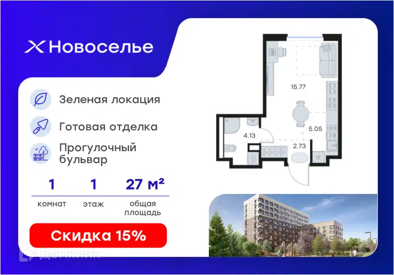 Купить студию в городе Новоселье