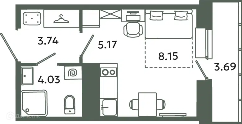 Студия, 23.99 м², 9/9 этаж