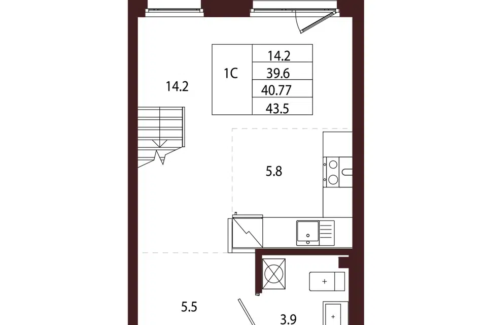 Студия, 40.77 м², 4/5 этаж