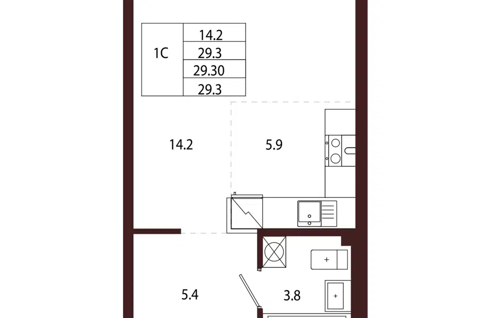 Студия, 29.3 м², 2/5 этаж