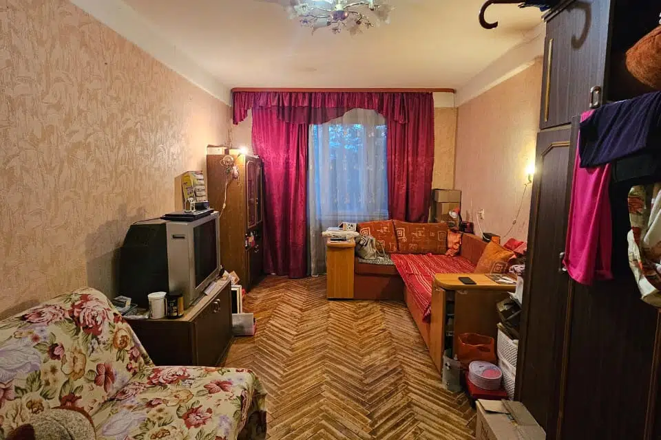 Квартира расположена на первом этаже девятиэтажного дома, построенного в 1977 году. Жилая площадь составляет 37 кв. м, а кухня — 6.3 кв. м.
