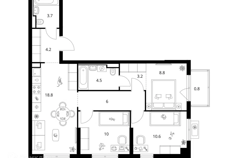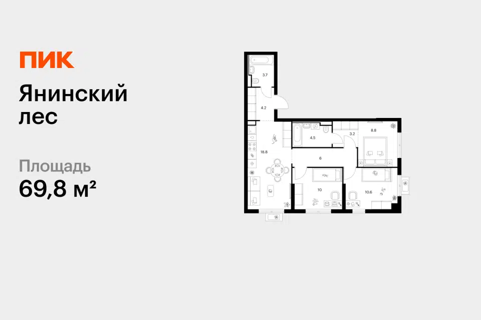 3-комн. кв., 69.8 м², 3/15 этаж