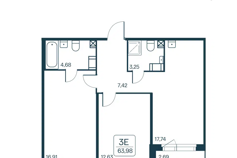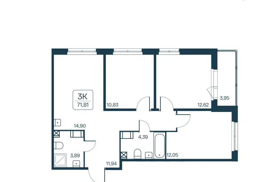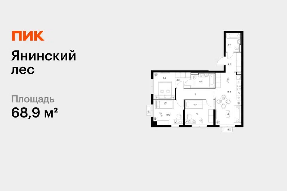 3-комн. кв., 68.9 м², 3/15 этаж