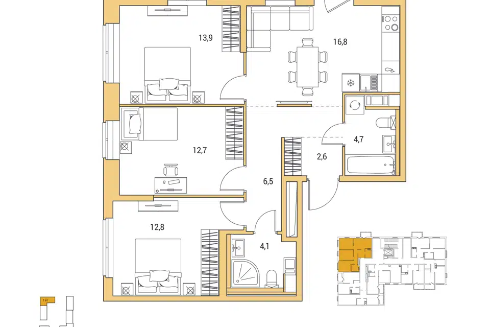 3-комн. кв., 87.9 м², 5/9 этаж