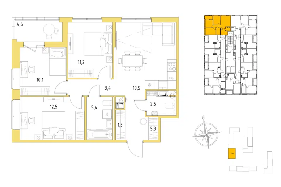3-комн. кв., 72.3 м², 1/12 этаж