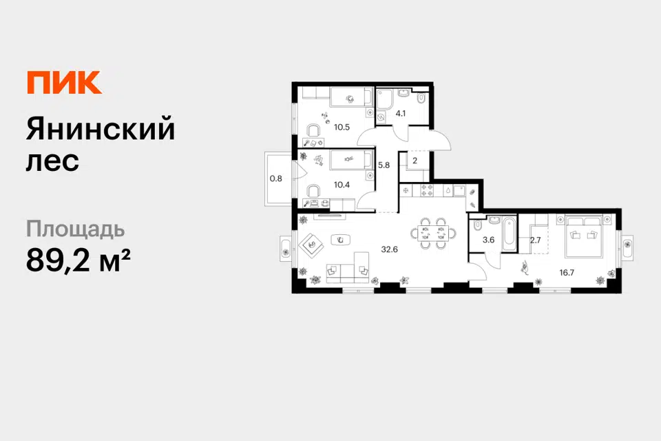 3-комн. кв., 89.2 м², 7/15 этаж