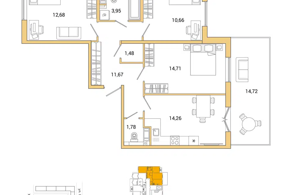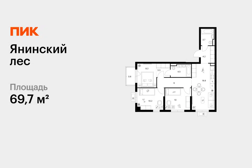 3-комн. кв., 69.7 м², 10/15 этаж