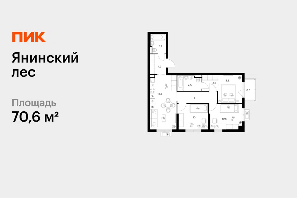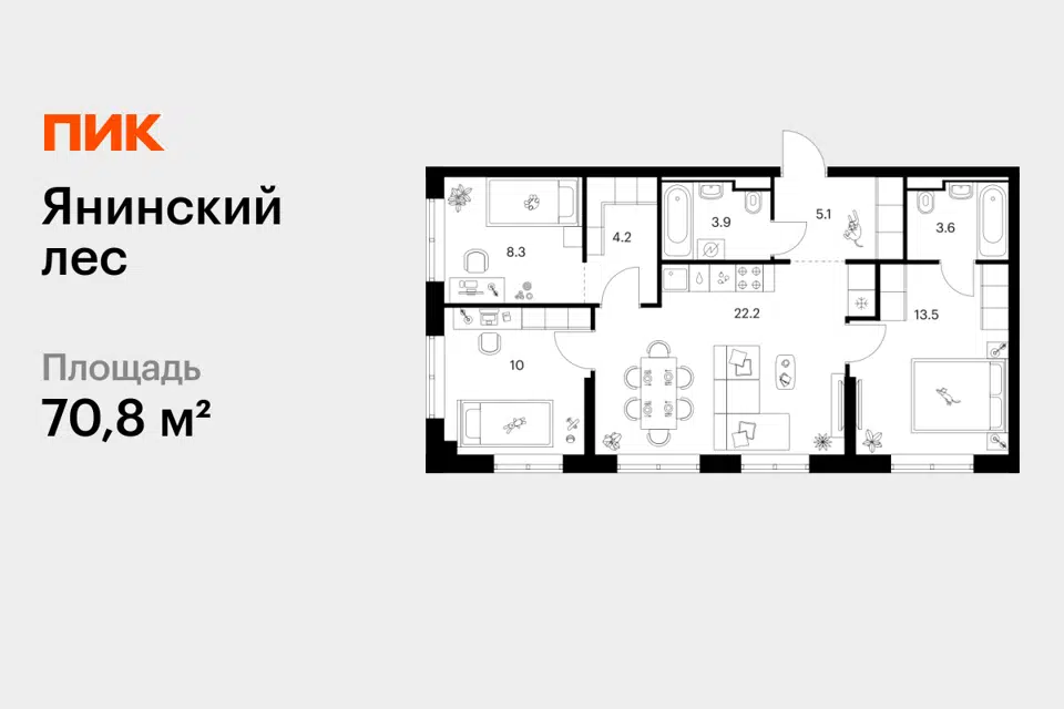 3-комн. кв., 70.6 м², 5/15 этаж