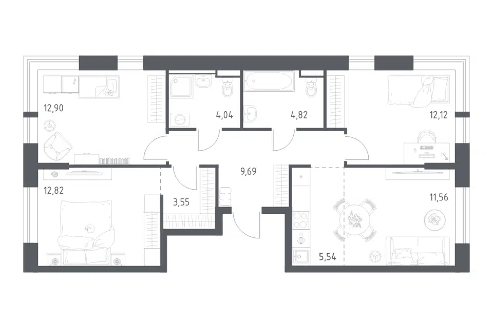3-комн. кв., 78.9 м², 7/12 этаж