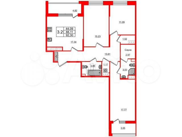 3-комн. кв., 88.11 м², 9/12 этаж