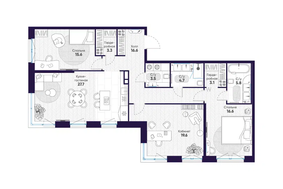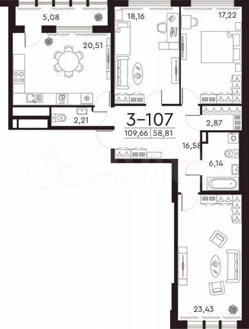 3-комн. кв., 116.5 м², 3/8 этаж