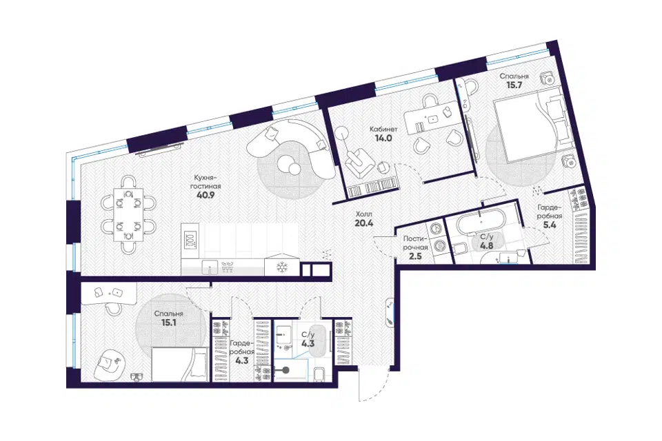 3-комн. кв., 153 м², 7/11 этаж