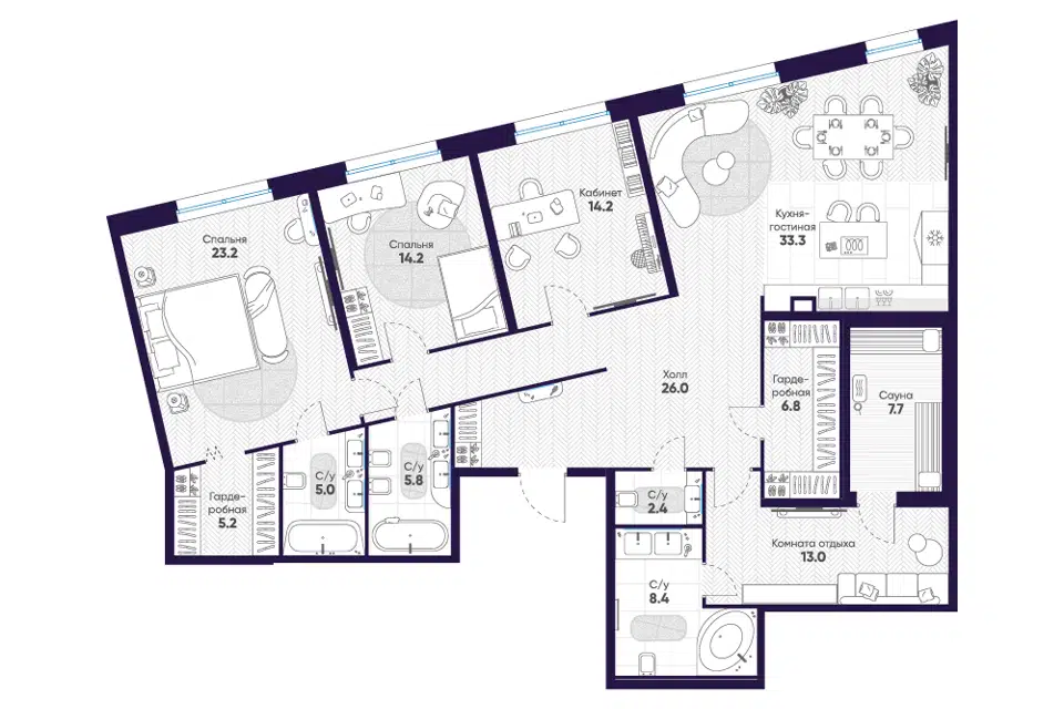 3-комн. кв., 127.4 м², 7/8 этаж