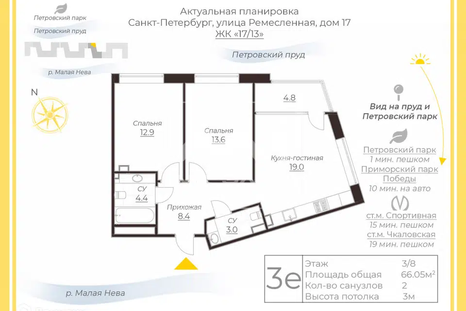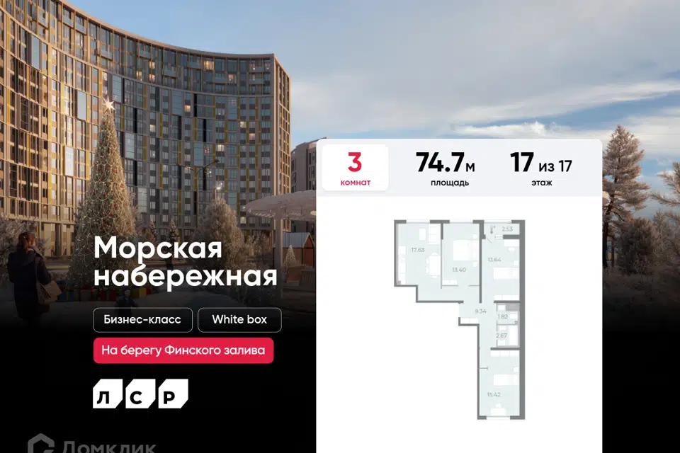 3-комн. кв., от 74.4 м², 13-17 этажи