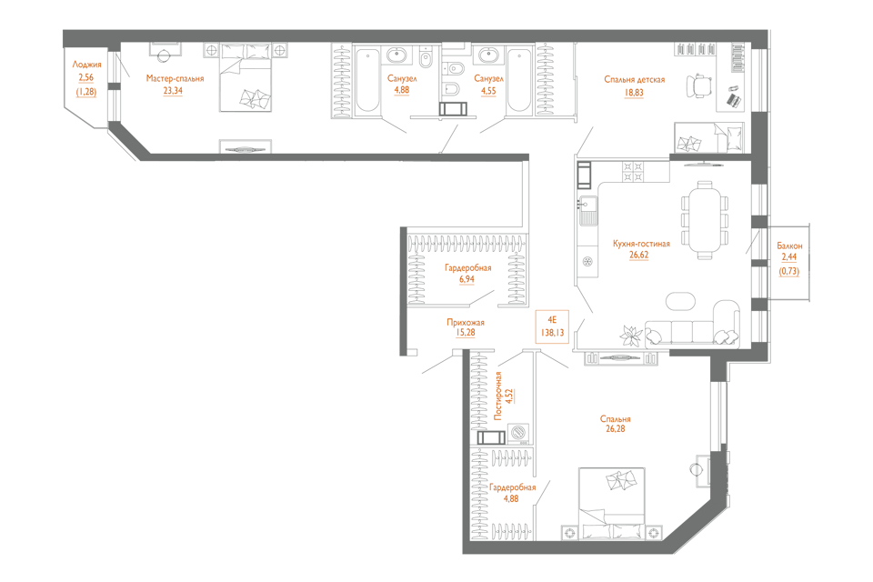 3-комн. кв., от 136.6 м², 2-3 этажи