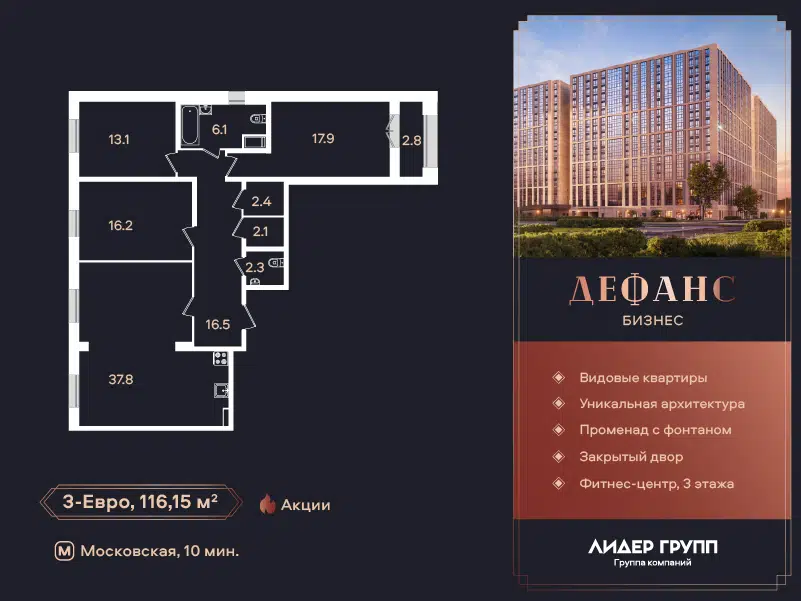 3-комн. кв., от 80.1 м², 2-18 этажи