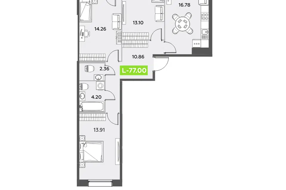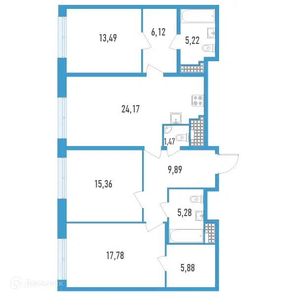 3-комн. кв., 78.59 м², 7/17 этаж