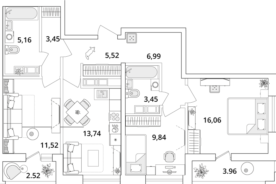 3-комн. кв., от 85.12 м², 22-24 этажи