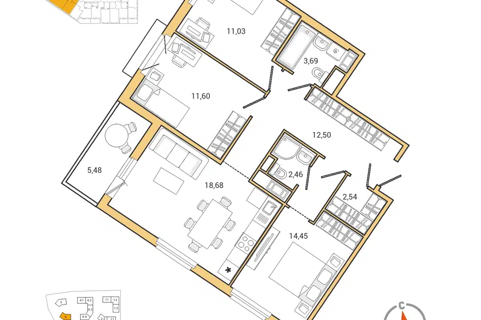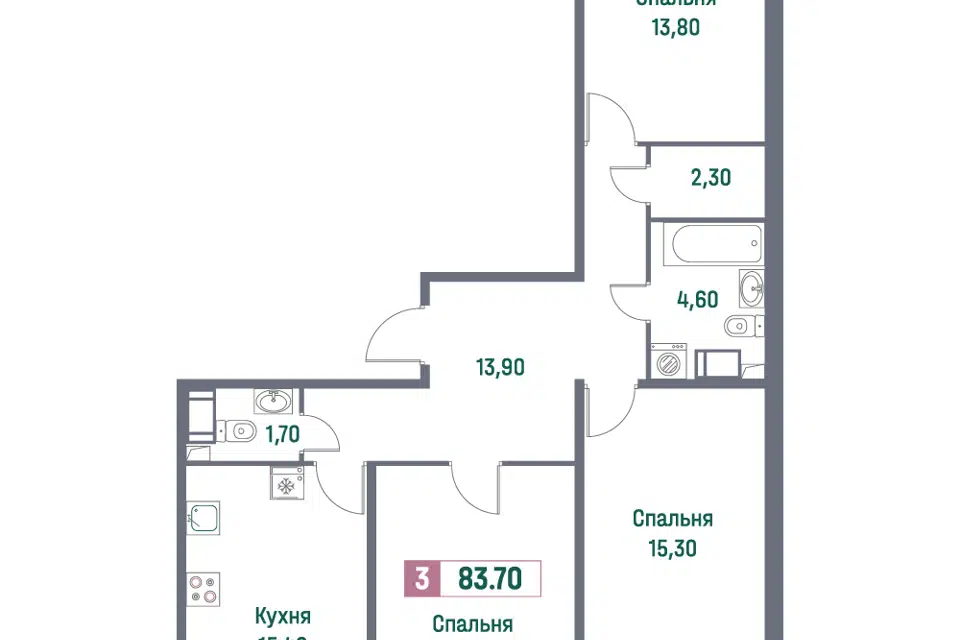 3-комн. кв., от 70.1 м², 2-16 этажи
