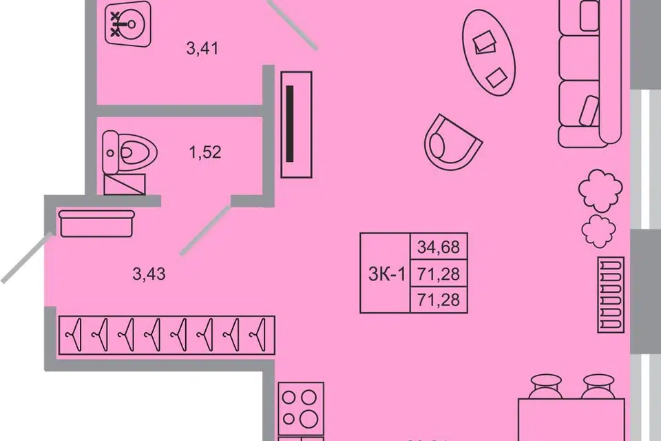 3-комн. кв., от 71.28 м², 4-9 этажи