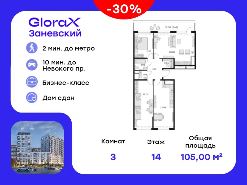 3-комн. кв., от 105 м², 14/14 этаж