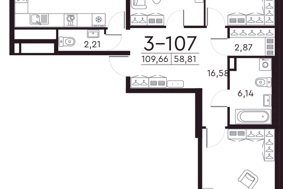 3-комн. кв., от 102.8 м², 2-7 этажи