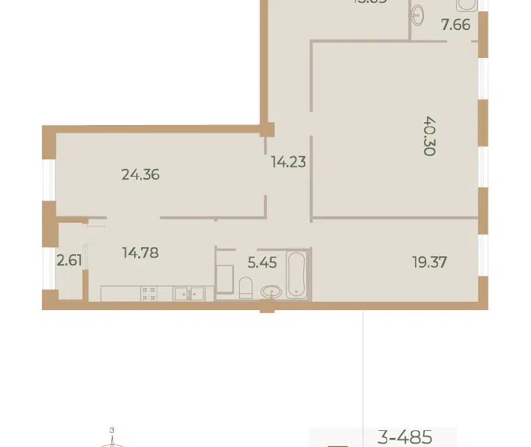 3-комн. кв., 118.7 м², 8/9 этаж